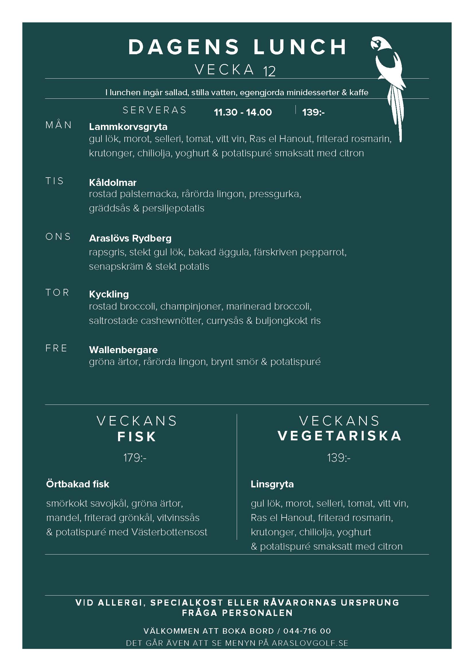 Menyn uppdateras varje vecka på araslovgolf.se